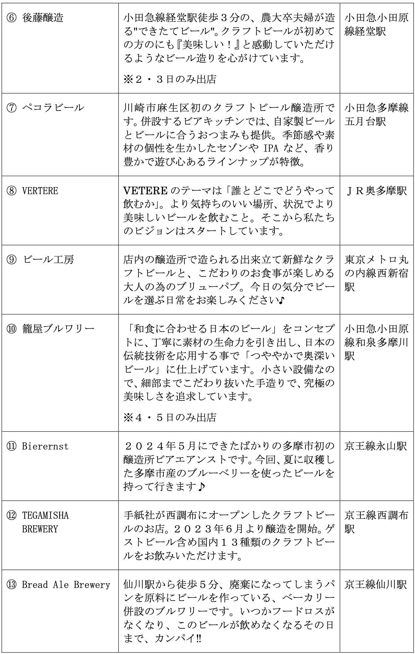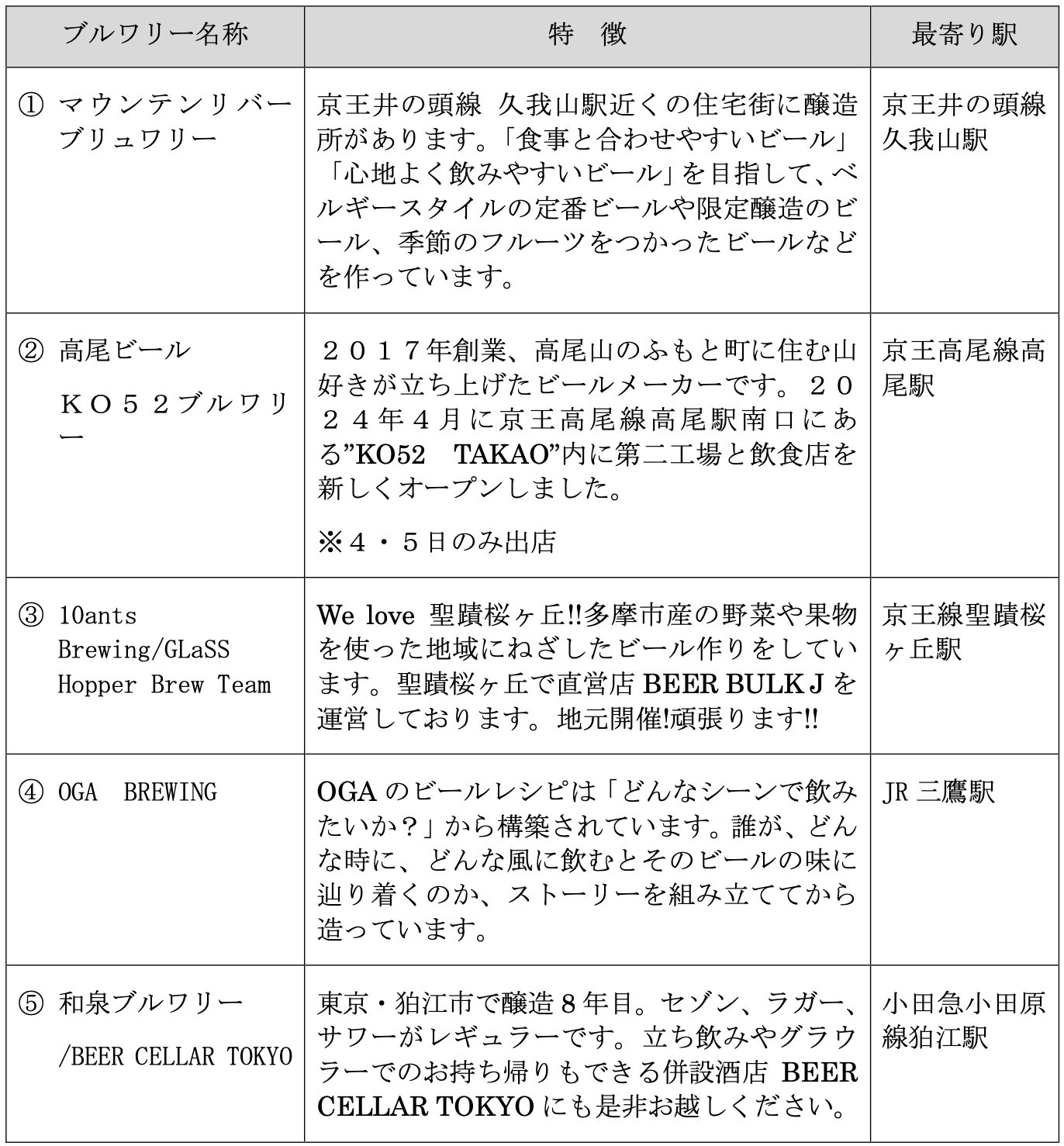 本イベントは、せいせきA館8階(屋上)BBQ場・BBQ場よこに京王線沿線や多摩地域に所在する16カ所のブルワリーが集合し、各小規模ブルワリーが独自に醸造する地域のクラフトビールを飲むことができるとともに、クラフトビールと相性が抜群なフード店も出店し、ご家族やご友人とお楽しみいただけるイベントです。2023年に開始し、今回で6回目の開催となります。