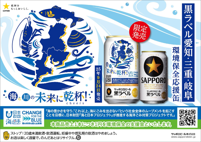 一般社団法人海と日本プロジェクトin愛知県は、海と日本プロジェクトの趣旨にご賛同いただいたサッポロビール株式会社とコラボレーションし、2025年9月24日(水)、同社よりサッポロ生ビール黒ラベル「愛三岐 海と川環境保全応援缶」を、東海北陸エリア7県で数量限定で発売します。