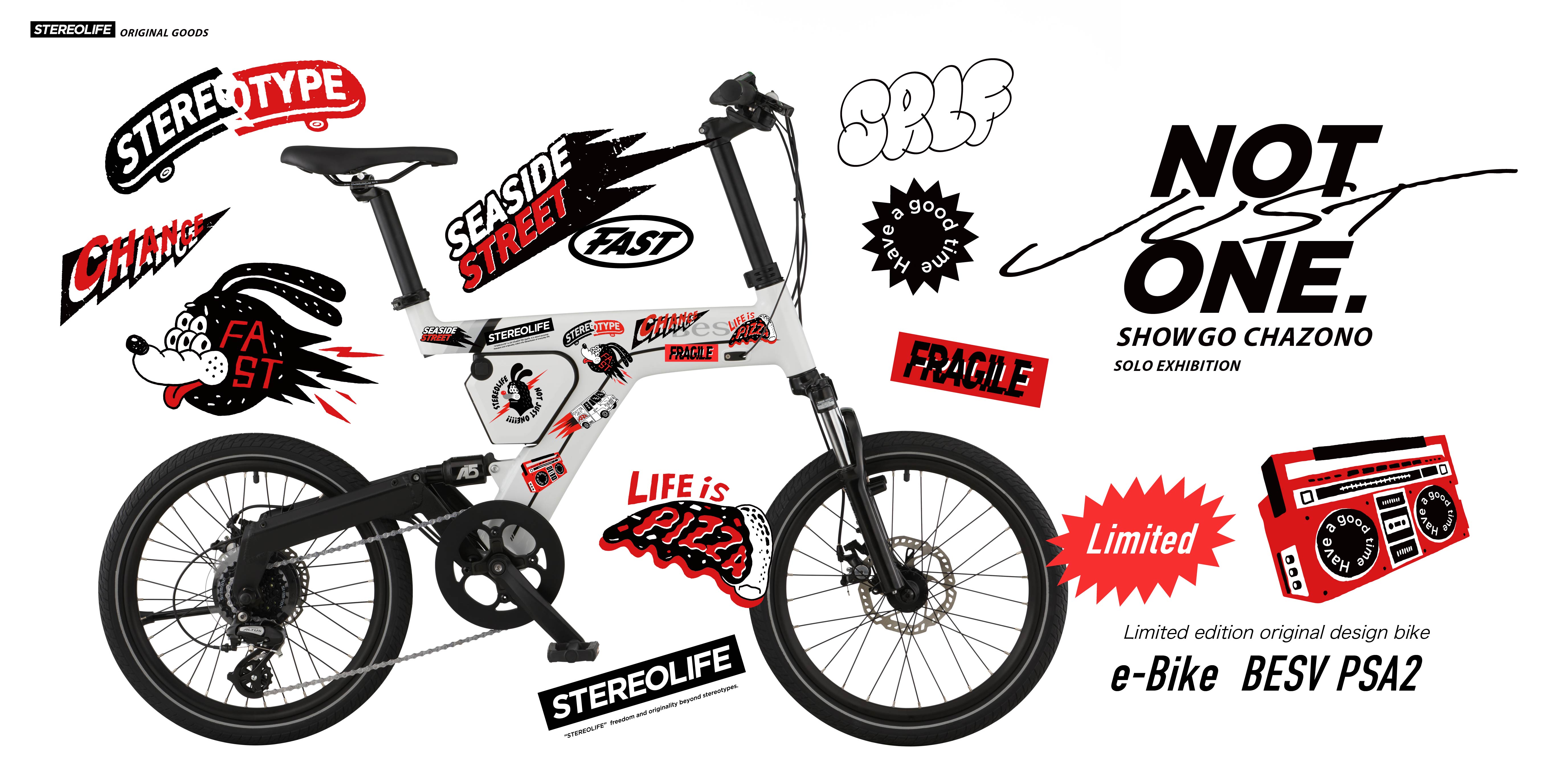 ストリートカルチャーを感じる独自の作風は、80年代カルチャーの影響やストリートパフォーマンス、ダンスの経験で培った感性に、自身の人生観を重ねることで作り出されます。そうして生まれた表現が、インスピレーションを受けてきた湘南 蔦屋書店の空間で、新たな印象を作り出します。また、作品の展示に加え、茶薗さんのアーティストブランド「STEREOLIFE」を含む本展グッズや、廃棄予定の食材を生かしたエシカルクラフトビールを製造する「Beer the First」とコラボレーションしたオリジナルパッケージビール、次世代のe-Bike「BESV」とのスペシャルコラボレーション限定バイクなど、様々な商品が登場します。期間中は、茶薗さんによる「オリジナル缶バッチ作り」のワークショップやアーティストの在廊も予定していますので、気軽にご参加いただき、茶薗さんとの交流もお楽しみください。