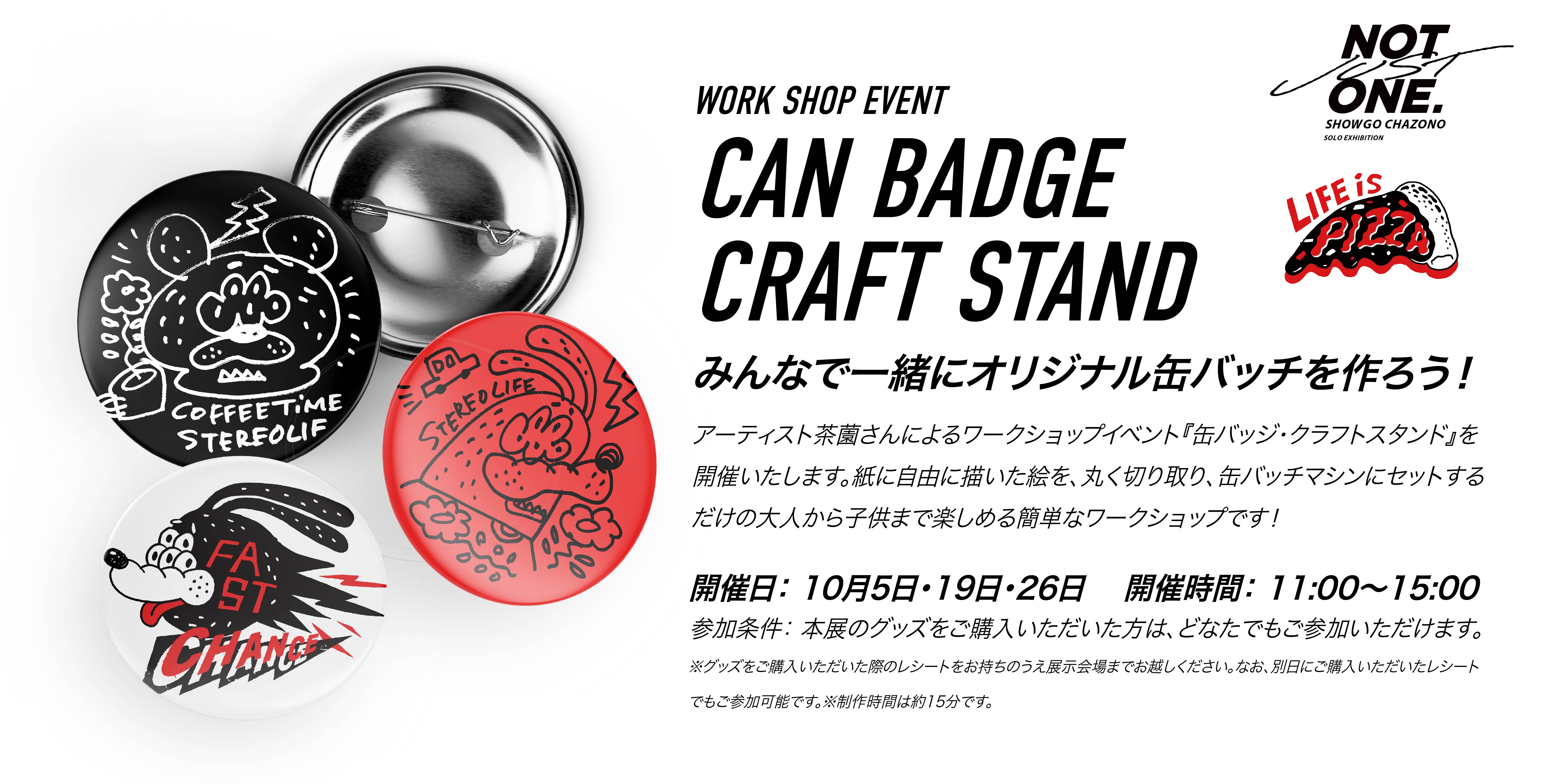 アーティスト、茶薗さんによるワークショップ「缶バッジ・クラフトスタンド」を開催。紙に自由に描いた絵を、丸く切り取り、缶バッチマシンにセットするだけの子供から大人まで楽しめる簡単なワークショップです。