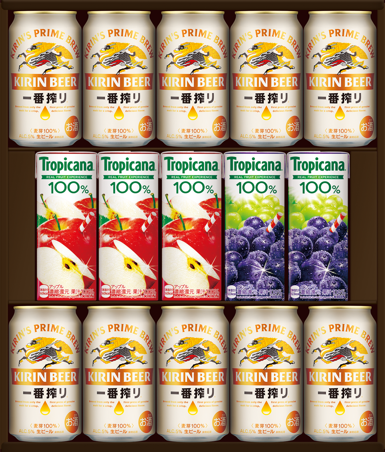 「一番搾り」はおいしいところだけを搾る一番搾り製法だから感じられる、雑味のない麦のうまみと調和のとれた飲みやすい味わいが特長です。「トロピカーナ」は果実そのものの味わいが楽しめる100%ジュースです。