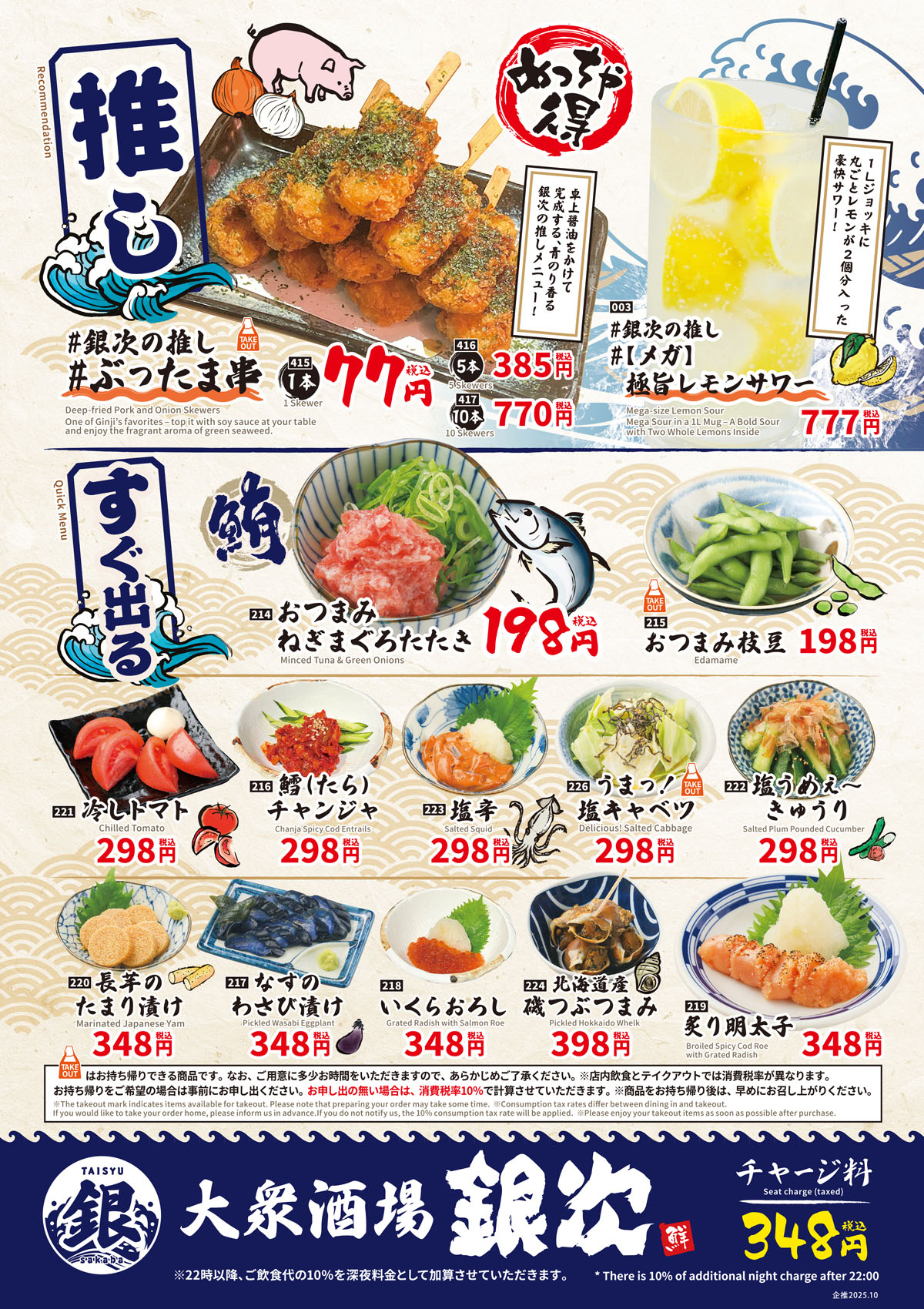 お客様の日常に寄り添い、「今日は銀次で一杯」と気軽に立ち寄っていただけるお店を目指しています。オープンを記念し、10月7日から2日間の“オープン記念 全品半額セール”を開催いたします。