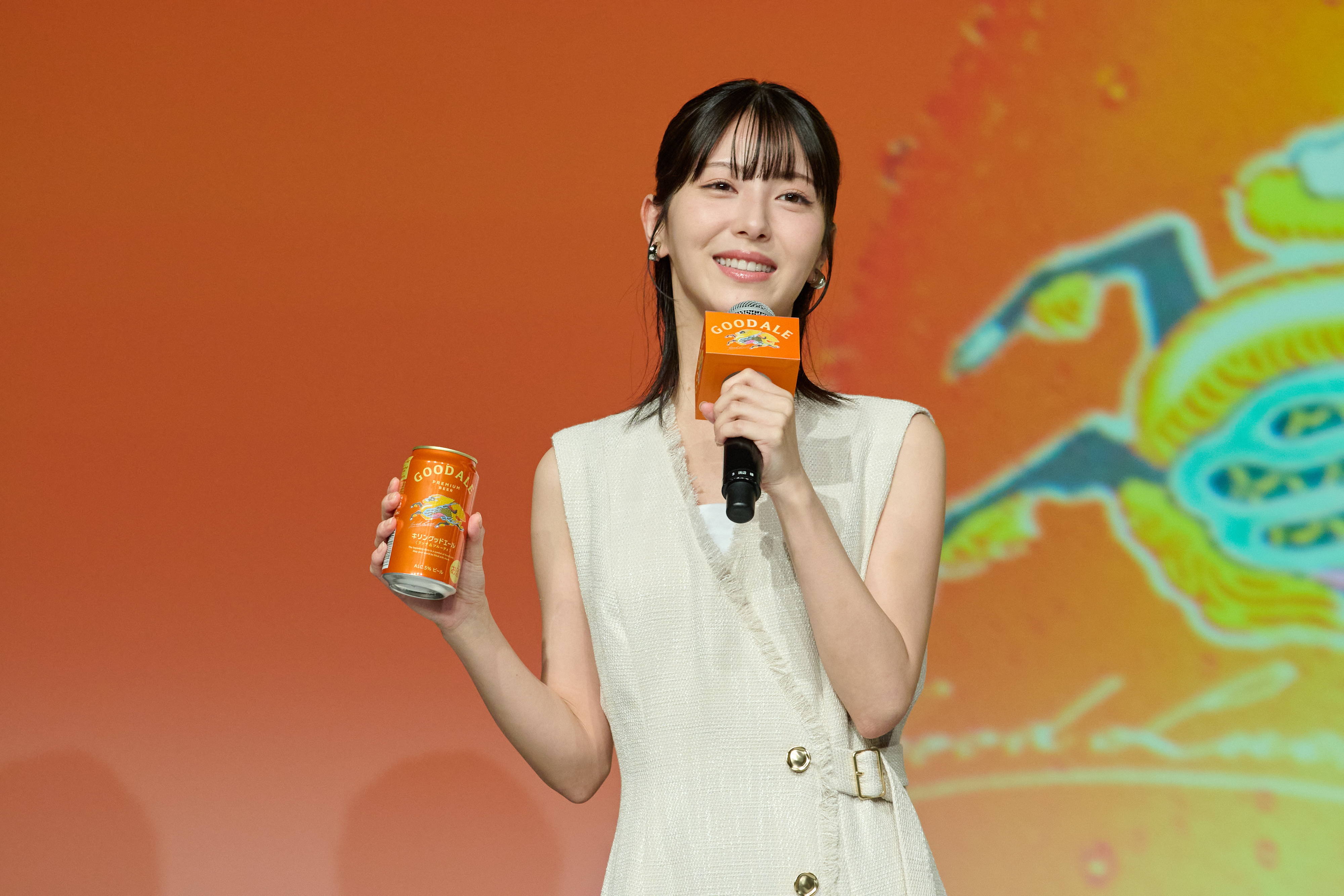TV-CM撮影について浜辺さんは「大雨もあって大変でしたが、みんなで晴れを願ったり、大音量の楽曲にのったりしてノリノリで撮影しましたよね!」と振り返り、大森さんは「『キリングッドエール』のコンセプトに合わせて、日本の皆さんが元気になるように願いを込めて制作しました。楽曲も楽しんでいただけるとうれしいです」と思いを語りました。