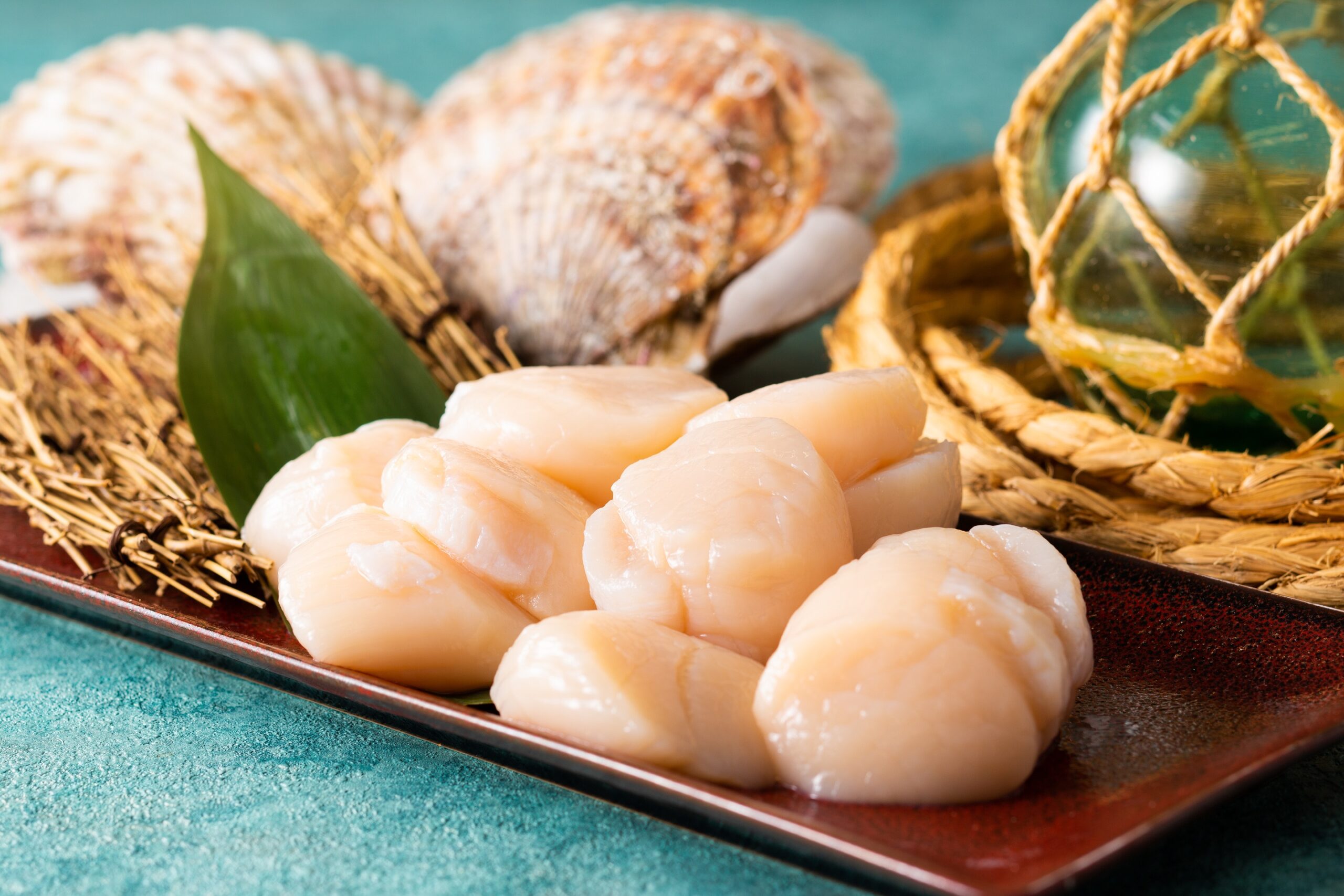 北海道・野付沖の栄養豊富な潮流のなかで育った天然帆立。自慢の大きさ・甘さ・うまみを堪能できます。