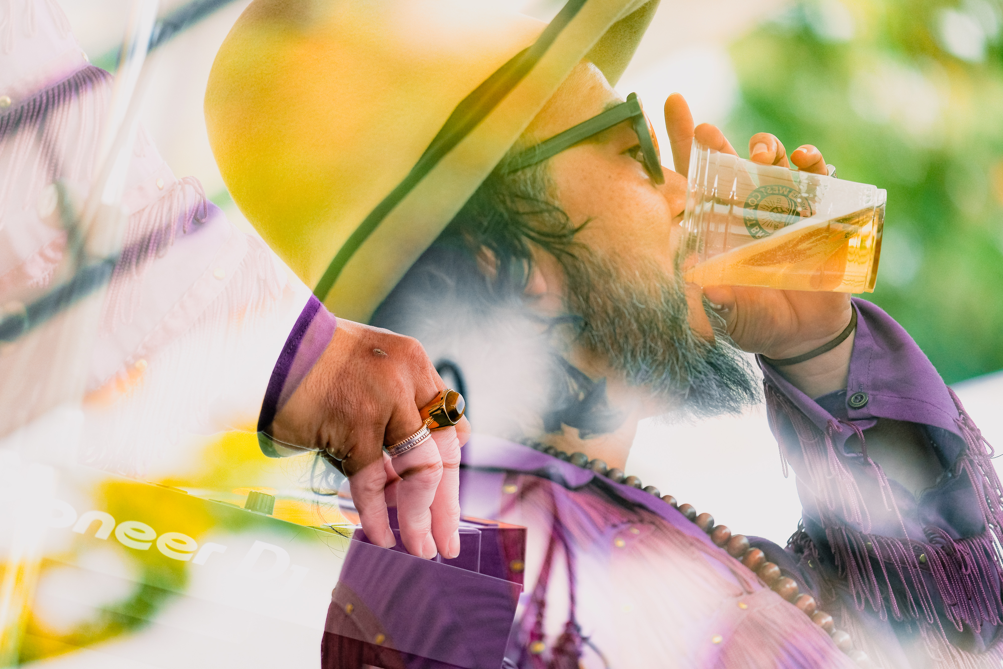 このあとHALL STAGEでライブを行うSOIL&”PIMP”SESSIONSの社長が、DJとしてGREEN STAGEに登場。社長は雑談的に観客へ「喋りと音楽、どちらがいいですか?」と尋ねつつも、「やっぱり音楽ですよね」とすぐさま頷く。そして、70年代後半から80年代初頭のディスコ/ファンク/ソウルの系譜にあるナンバーをシームレスにプレイした。この頃、時刻は15時台後半。夕暮れ時にぴったりな、グルーヴィーな楽曲群だ。ビールがますます進んだという人も少なくなかったことだろう。社長自身もビールを片手に、リズムに身を揺らしながら、フィールドの空気感を音楽に反映させていた。クロージングナンバーは、アース・ウィンド・アンド・ファイアー「Shining Star」。「このあとあっちでSOILのステージがガッツリありますんで、どうぞお楽しみに!」と期待を感じさせる言葉を残して、ステージを去った。