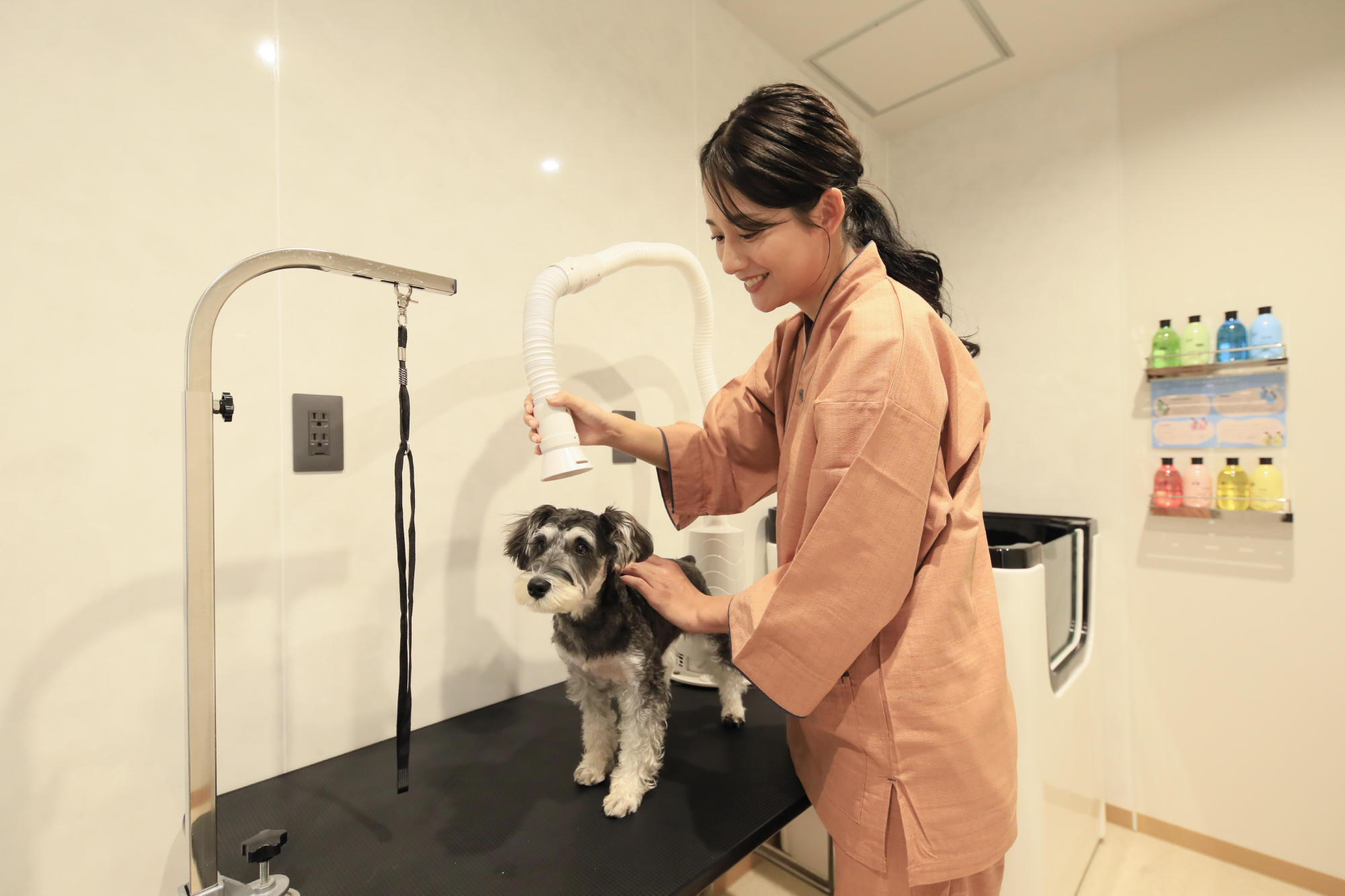 当館は熱海ならではの温泉と食事に加え、海を望むルーフトップドッグランやわんちゃん用ビュッフェ、復元ドライヤー完備のトリミングルームなど愛犬のヘルスケアにも寄り添ったコンテンツを取り揃えています。