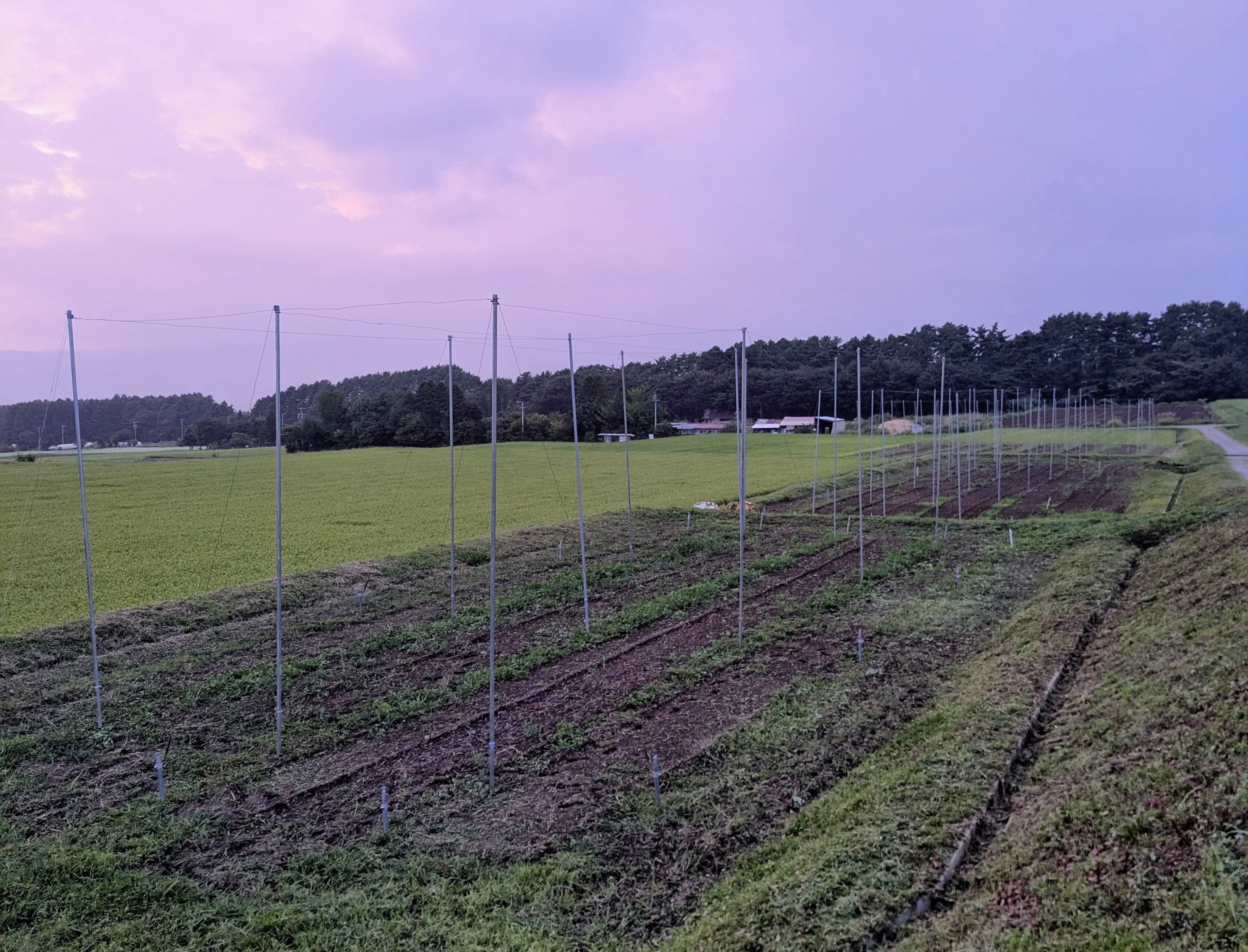2023年には耕作放棄地となってしまっていた地域の圃場(約4000㎡)を借受け、土壌改良や排水対策を施しながら2025年にホップの苗を定植しました。