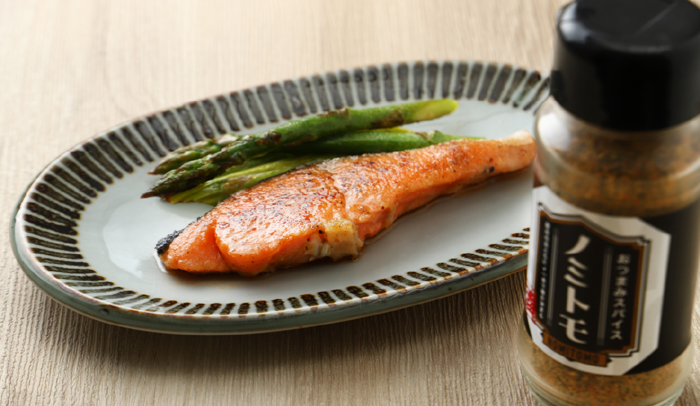 焼いた鮭や白身魚などに「ノミトモ」をさっと振りかけるだけで完成します。魚介の旨味にスパイスのキレが加わります。白ワインやハイボールにも好相性です。