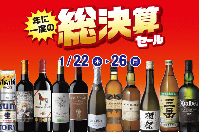 リカーマウンテン各店では1月22日(木)からの5日間「年に一度の総決算セール」開催します