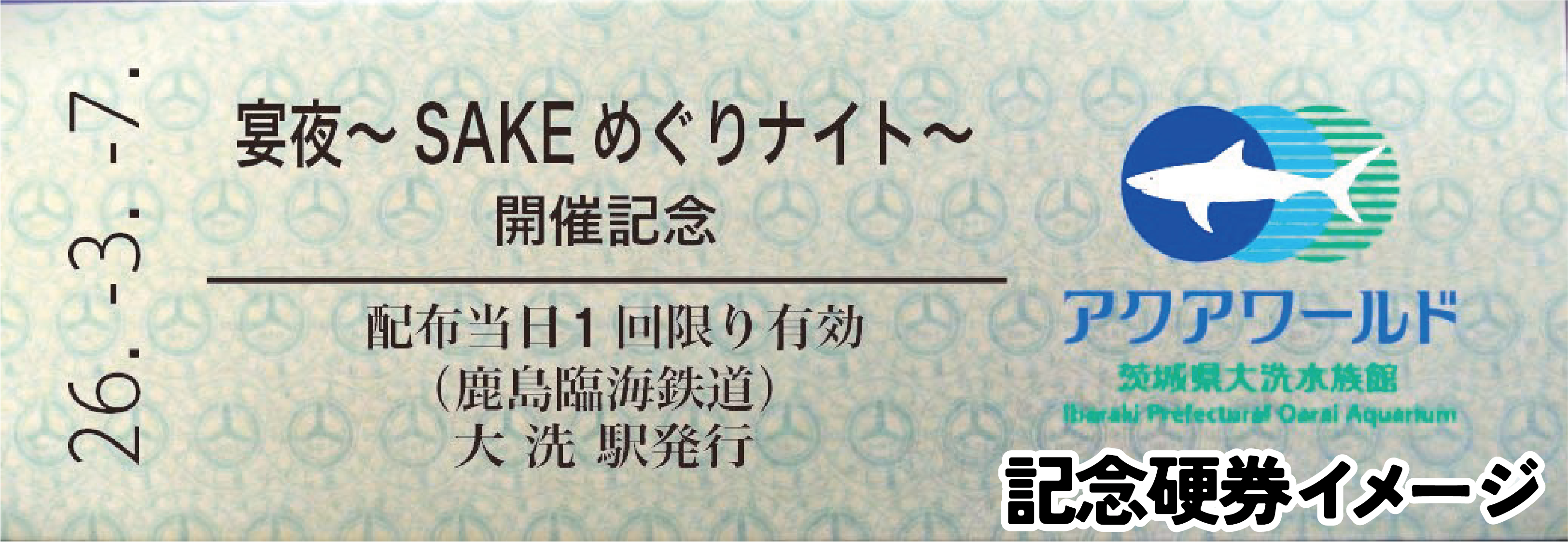 「宴夜~SAKEめぐりナイト~」のチケットをご購入いただき、鹿島臨海鉄道大洗鹿島線を利用してご来館いただきましたお客さまには、記念硬券とオリジナルグラス(非売品)をプレゼントいたします(先着200名限定)。また、大洗駅と当館を結ぶ無料のシャトルバスも運行いたします。ぜひ、イベント参加記念として、公共交通機関でのご来館をご検討ください。