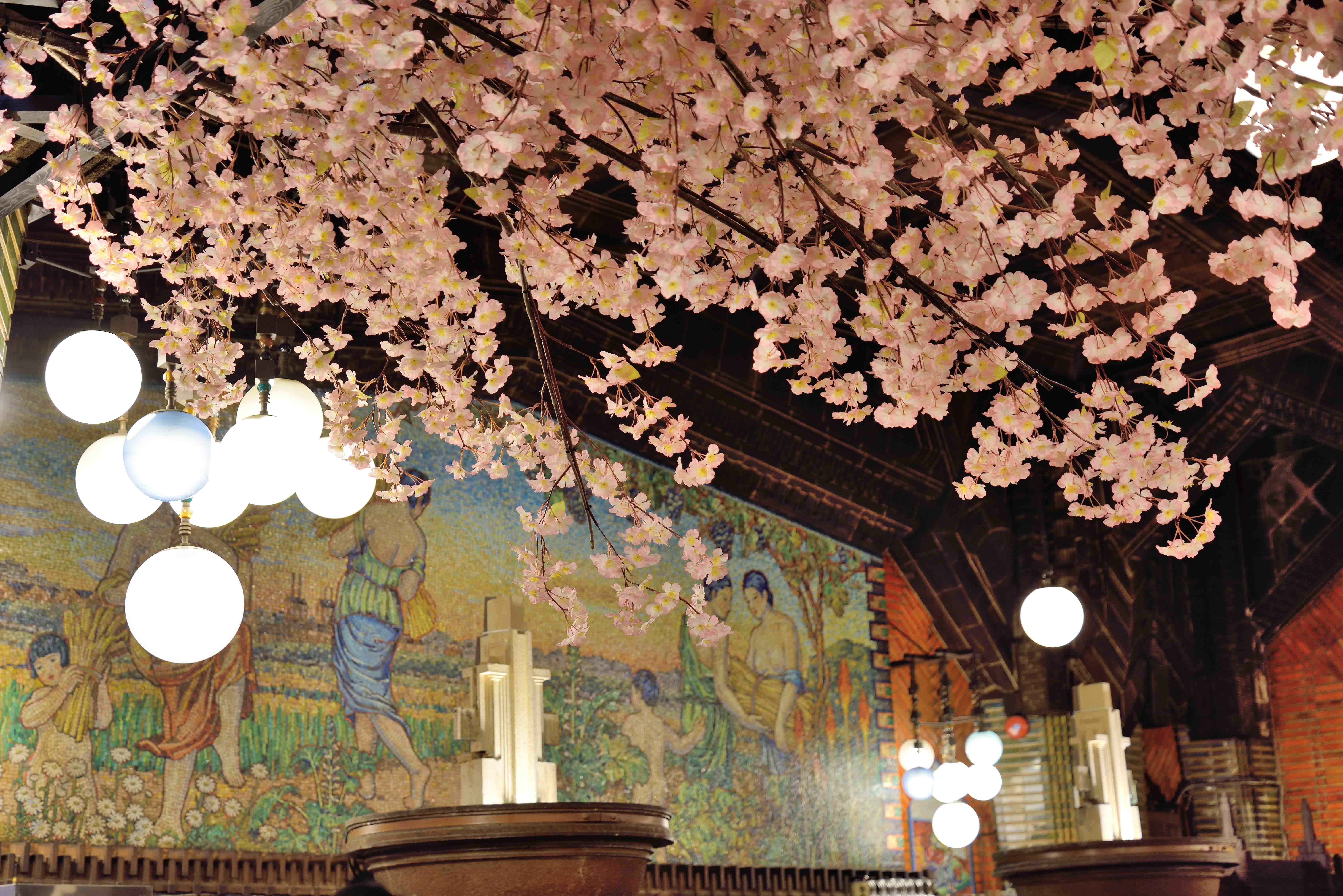 伝統のビヤホールに桜咲く。