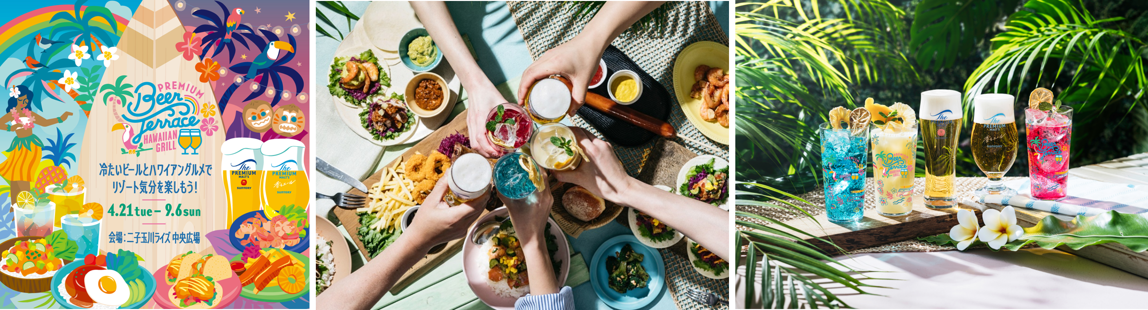 東急田園都市線・大井町線 二子玉川駅直結の大型複合用途施設「二子玉川ライズ」では、 2026年4月21日(火)から9月6日(日)の期間限定で「PREMIUM BEER TERRACE 2026 -HAWAIIAN GRILL-」を開催します。昨年、一昨年と大好評だった“ハワイ”をテーマにしたビアテラスが今年も登場。幅広い世代が心地よく過ごせる、開放的な屋外スペースで、家族でも気軽に楽しめるひとときをお届けします。