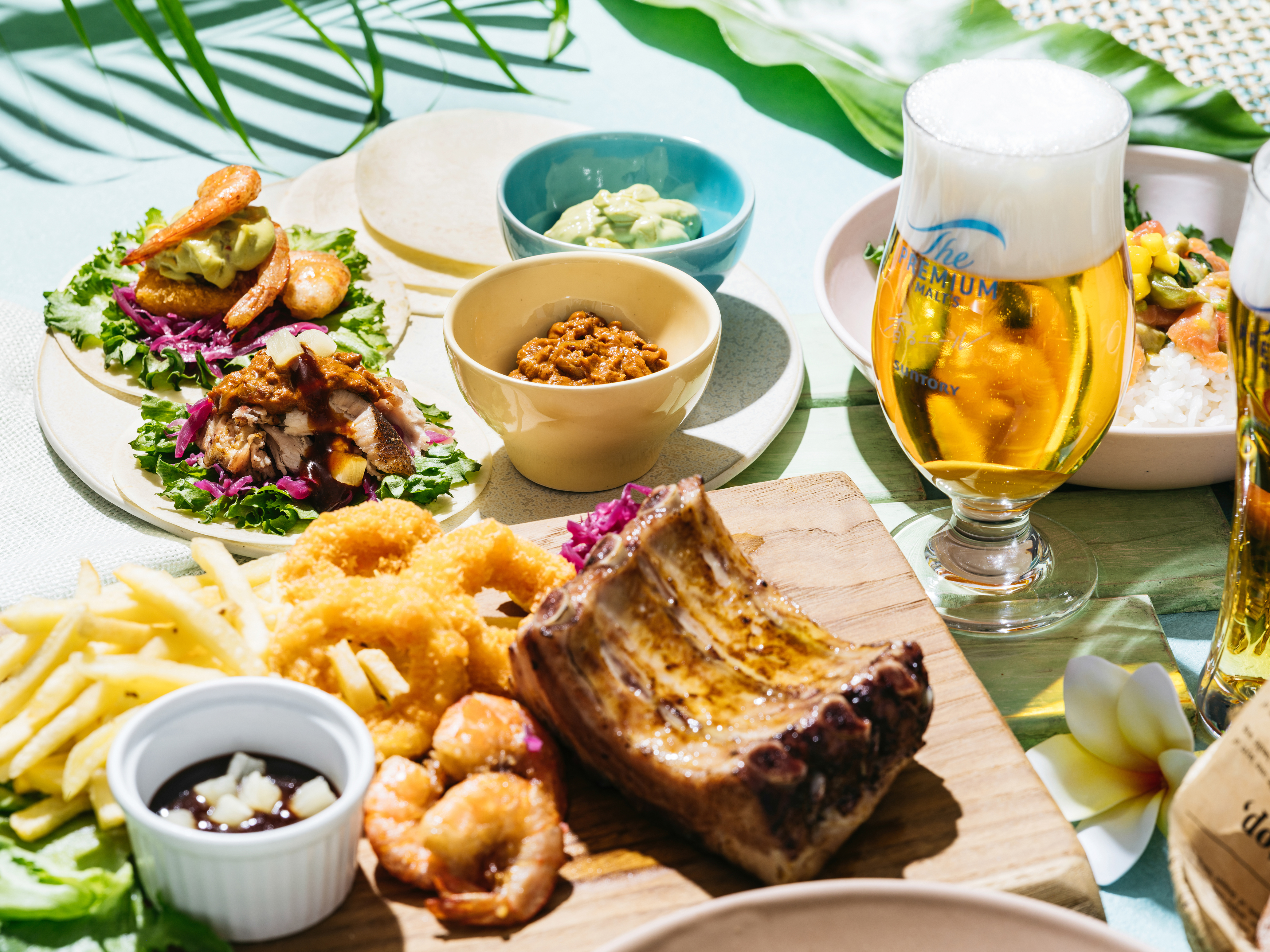 今年はハワイで人気の「タコス」を取り入れた新メニューが登場。スペアリブを豪快に手で裂いて自分好みのオリジナルタコスに仕上げる「サーフ&ターフ ハワイアンタコスパーティー」など、ハワイを感じる料理に、体験型で楽しめる要素もプラスした、今年だけのラインアップです。