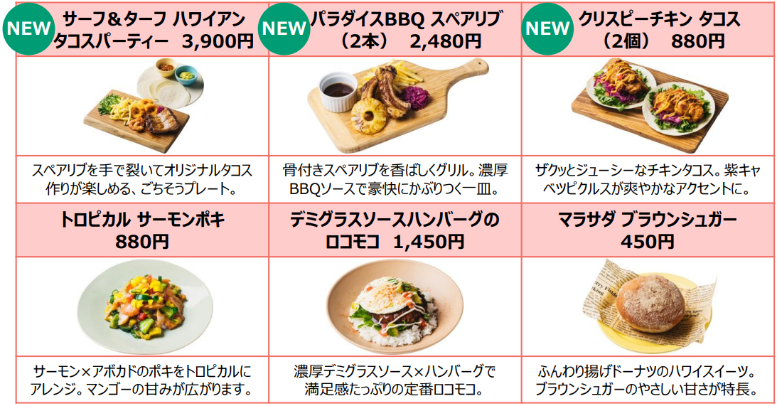 人気商品に加え、ハワイ風にアレンジした「タコス」など、ハワイアングルメ16種類が登場!