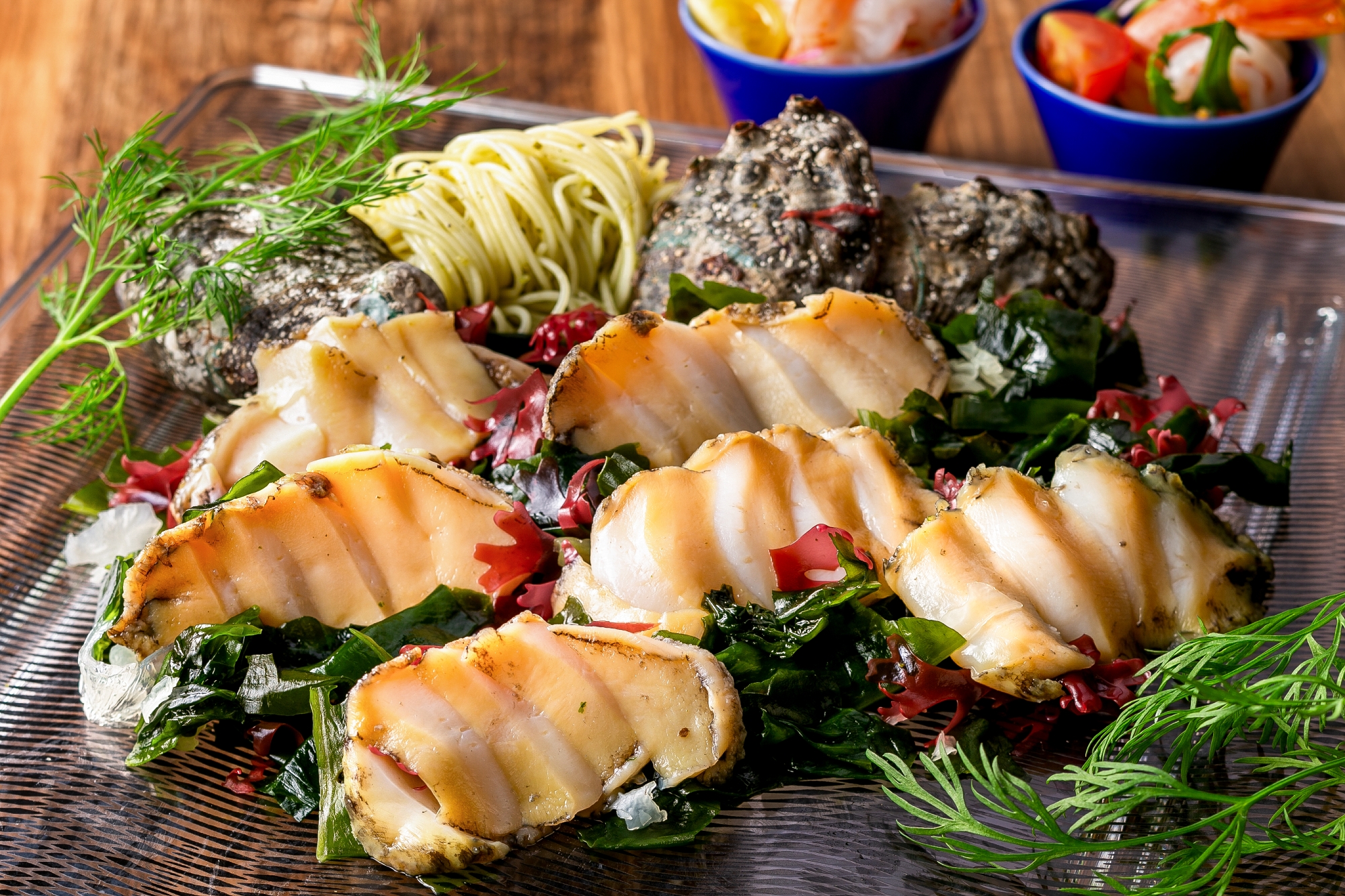 蝦夷アワビの殻焼き カッペリーニ・ジェノベーゼ