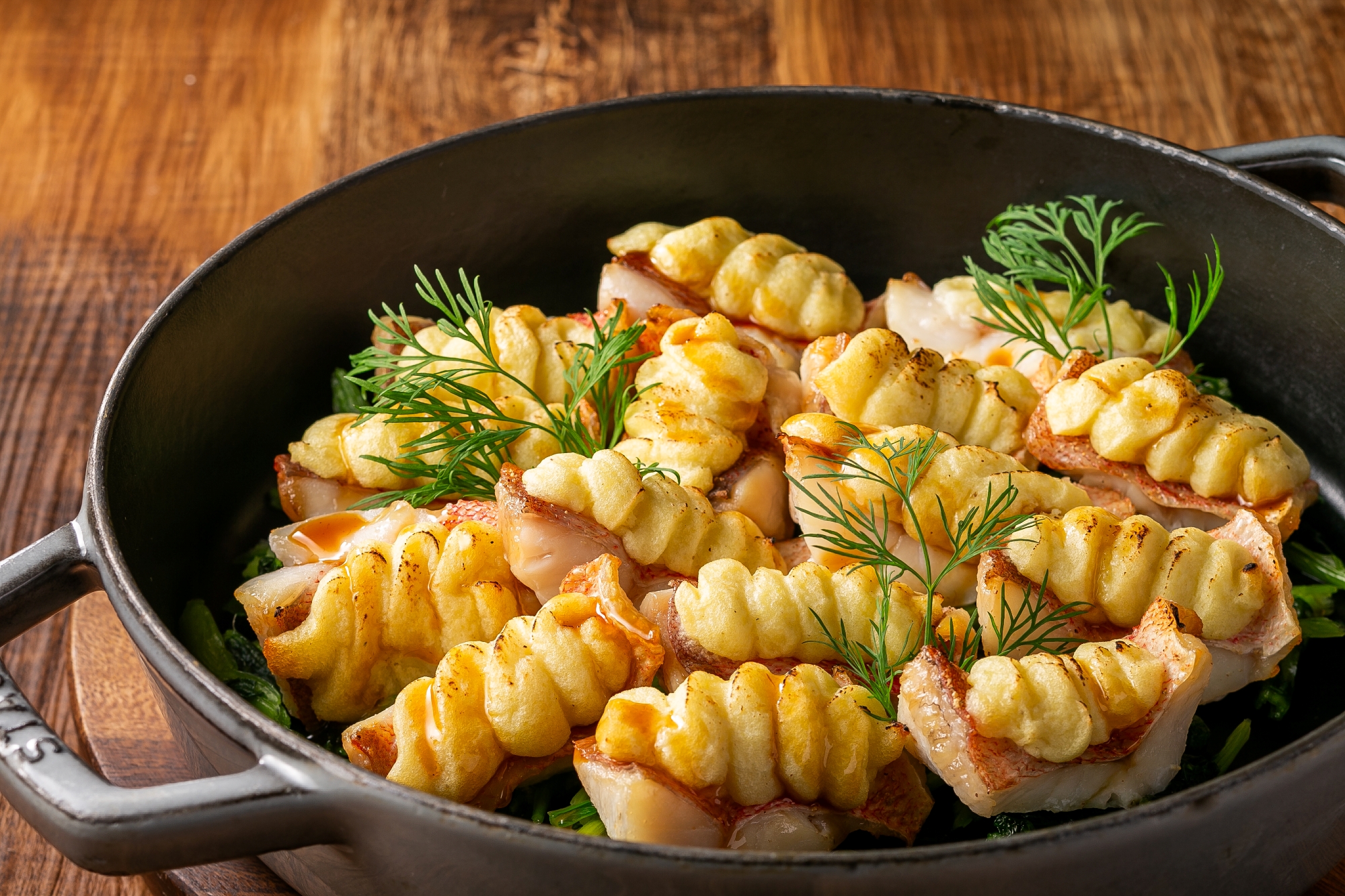赤魚のポワレ 県産じゃがいものマッシュポテト焼き 瀬戸田産レモンの香り