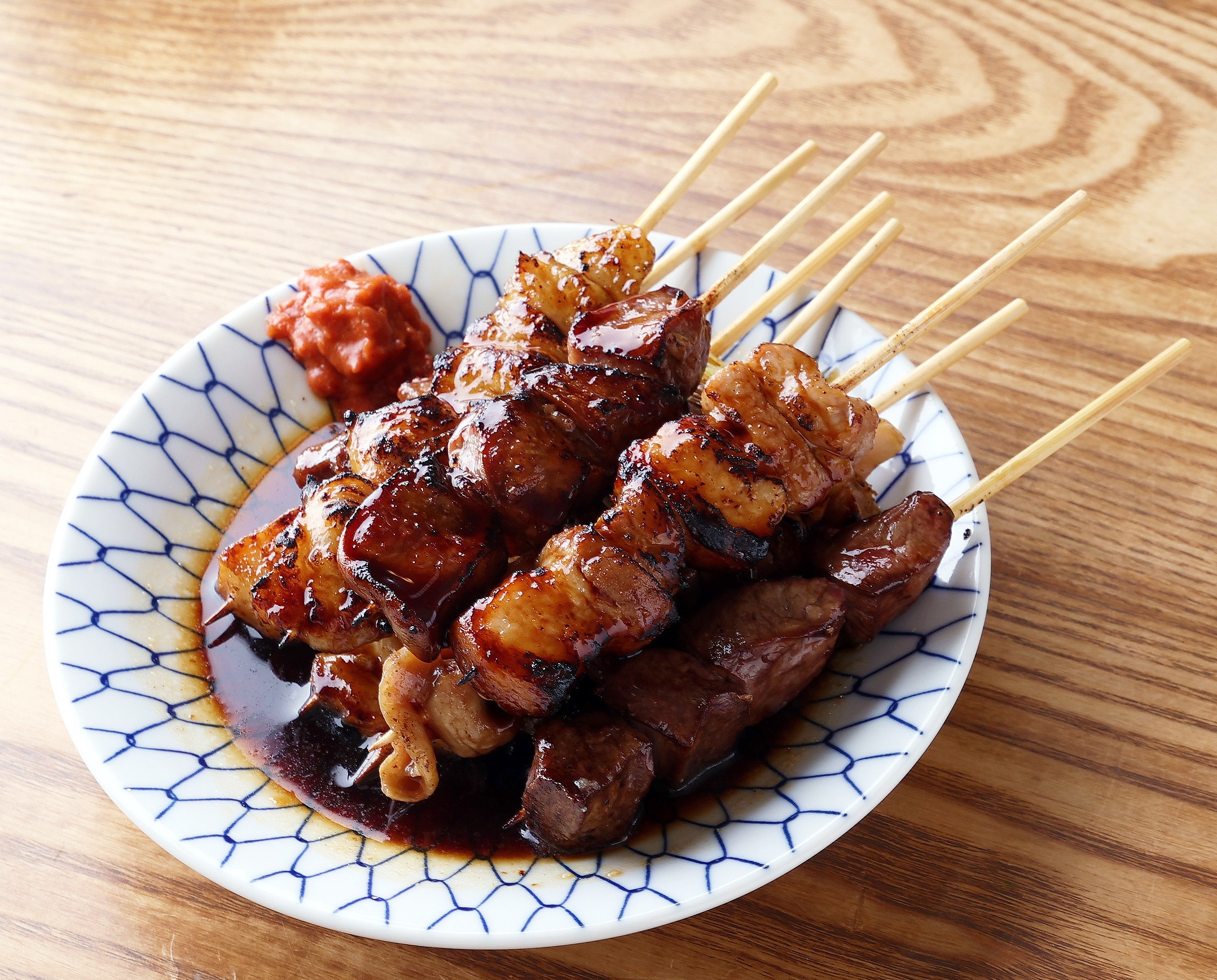 「もつ焼 串かつ あさちゃん」では、毎日直送される新鮮な豚モツや鶏肉を使用し、一本一本丁寧に