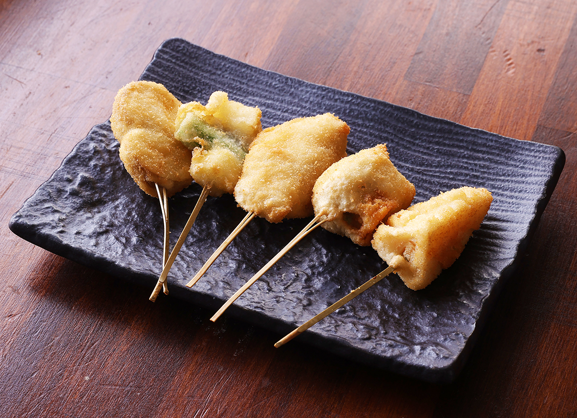 焼き上げた自慢の「もつ焼」を提供しています。さらに、山芋をブレンドしたサクサクの衣と特製ソースが決め手の「串かつ」も人気メニューのひとつです。