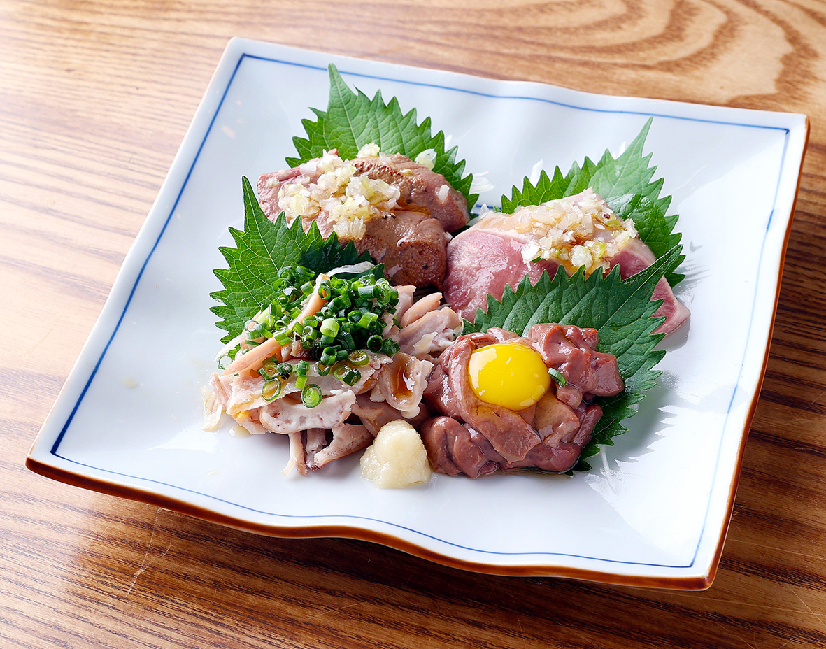 ガツ刺し・レバ刺し・タン刺し・鶏ハツ刺し・とろレバユッケ