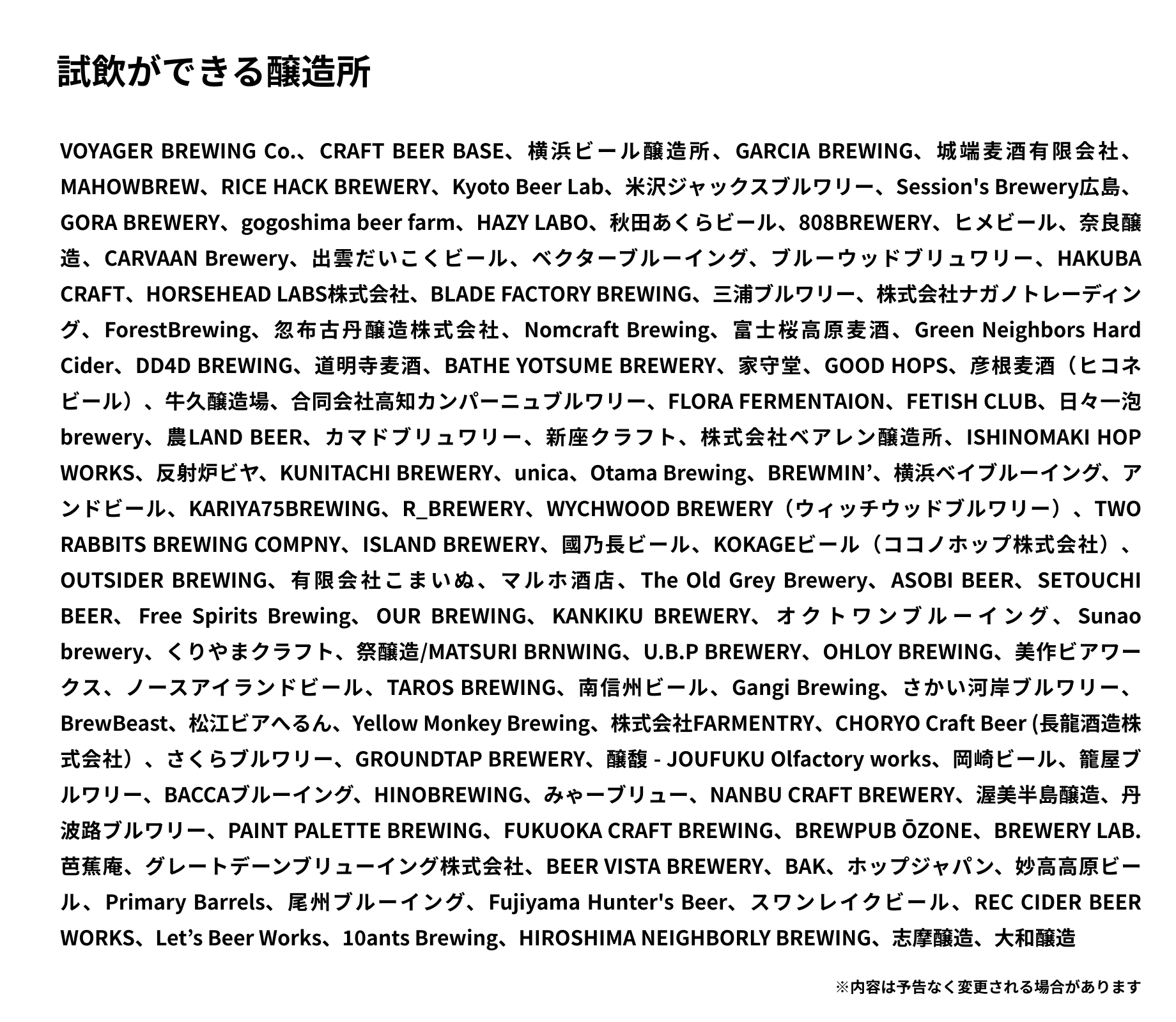 ※掲載内容は現時点での予定であり、参加ブルワリー数、液種数、内容は変更となる場合があります。