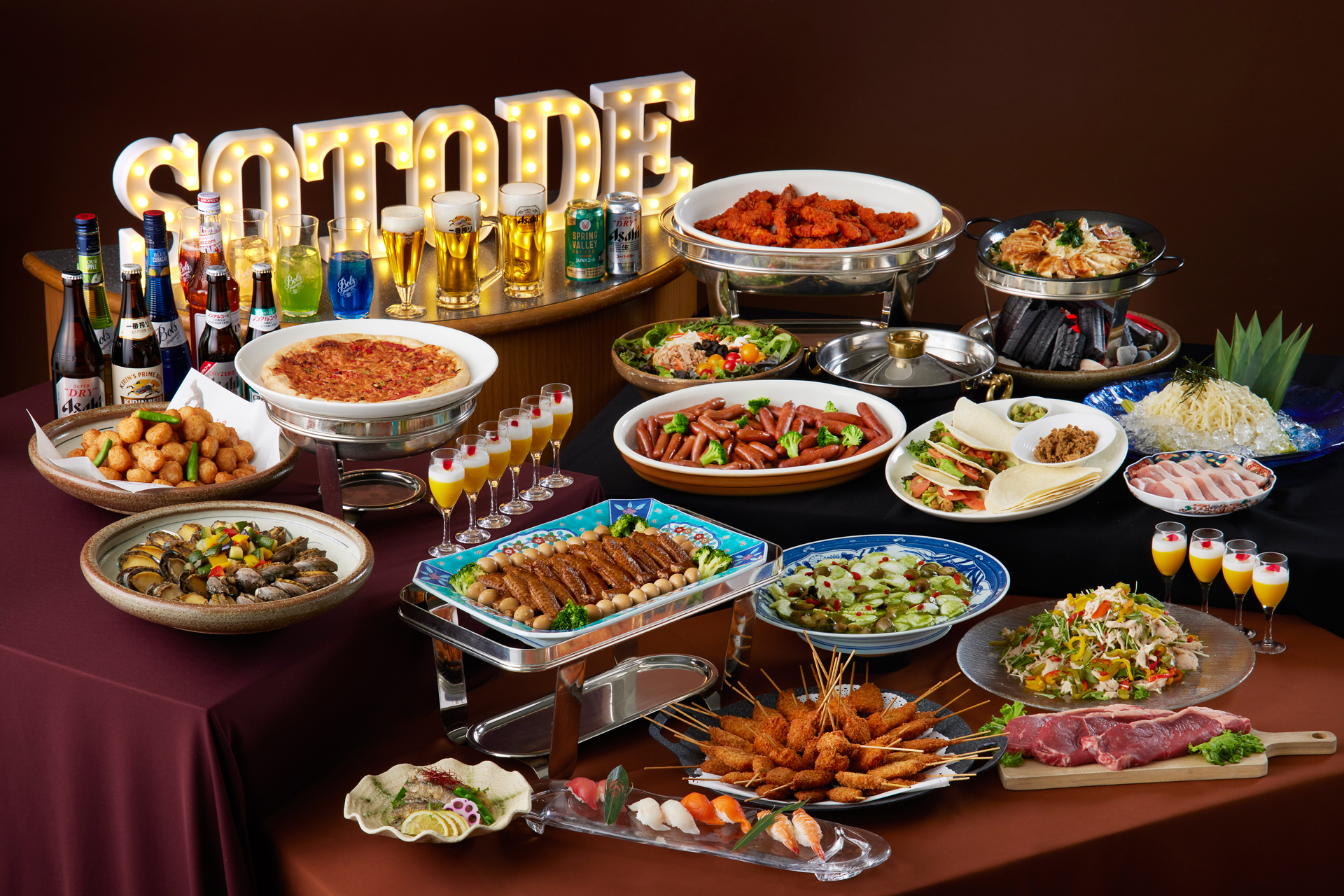 毎年好評の夏のビアガーデンが、今年は「都ホテルズ&リゾーツ」ブランド加盟20周年を記念し、さらに充実して登場します。地上40mの開放感あふれる空間で、涼やかな夜風に包まれながら、和・洋・中の料理長が手がける多彩なメニューをブッフェスタイルで心ゆくまでご堪能いただけます。生ビールやクラフトビール、カクテルなどドリンクも充実し、仕事帰りの一杯からご友人同士の集まりまで、幅広いシーンに対応します。