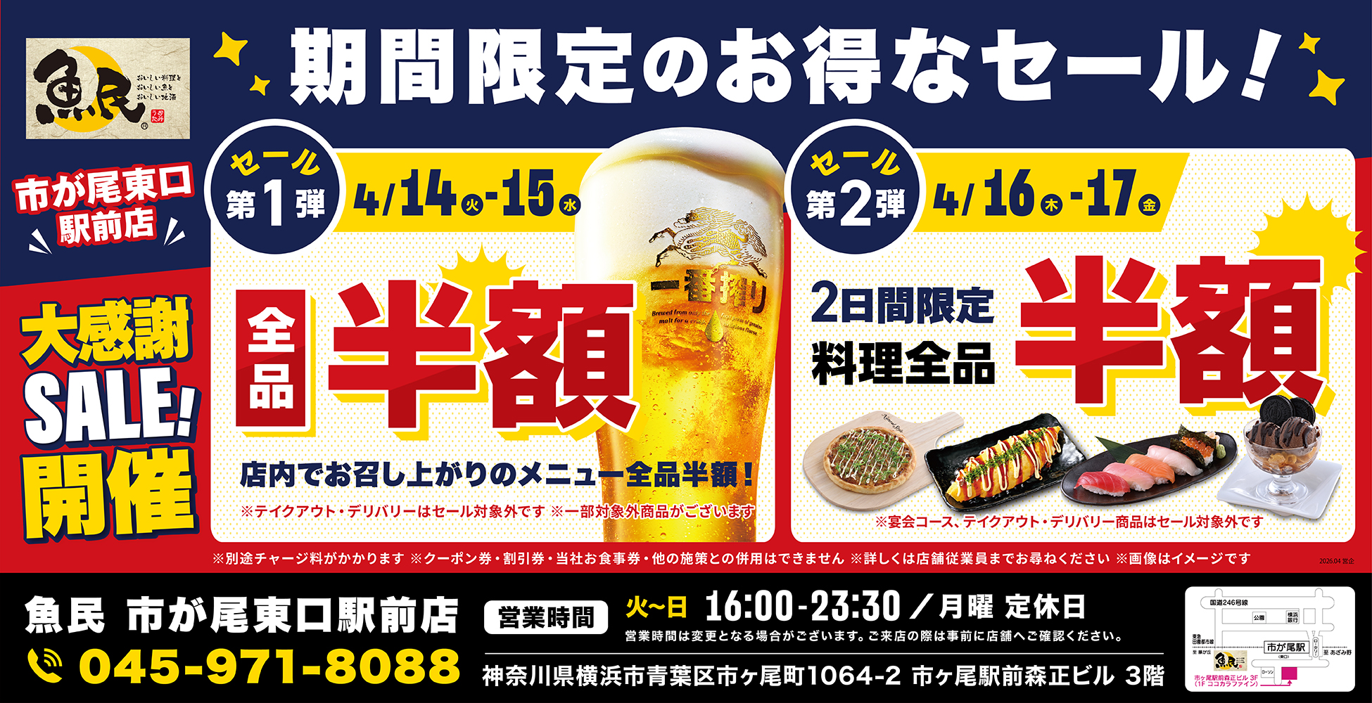 「魚民 市が尾東口駅前店」限定!お得な4日間!