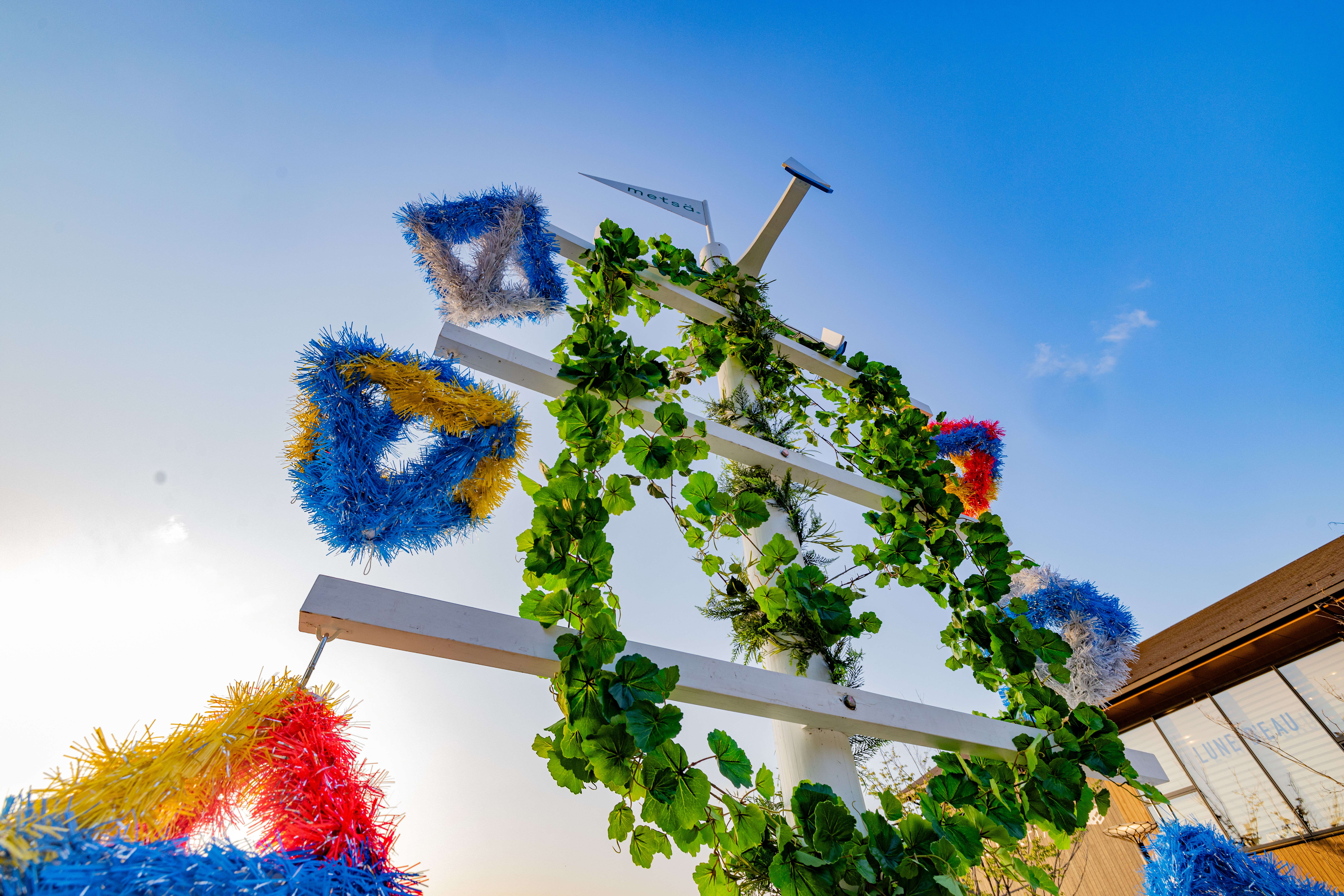 そこを通り抜けた先の広場にあるのはスウェーデンとフィンランドの中間の島「オーランド」のユニークなスタイルのメイポール。期間中には、このメイポールを囲んだフィンランドの伝統的なミッドサマーダンスパフォーマンスを開催します。デモンストレーションのあとは、皆さんも一緒に参加できます。