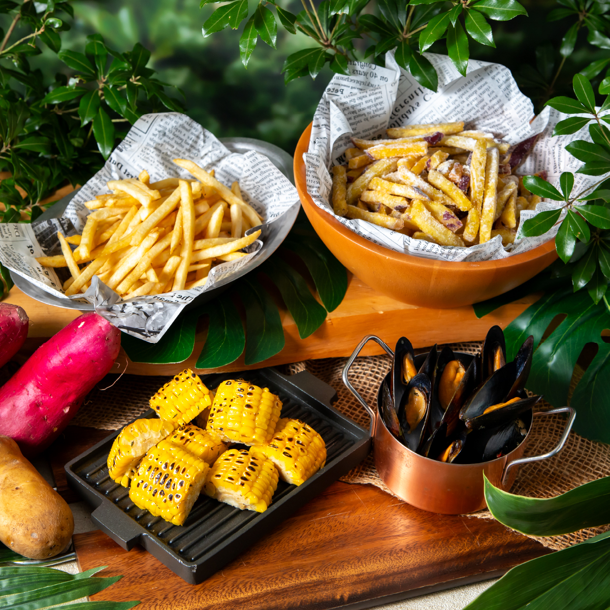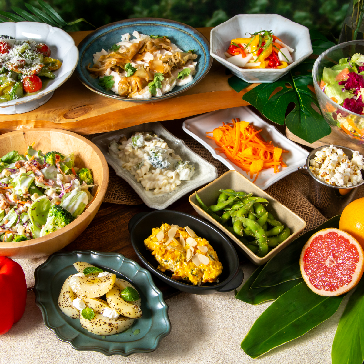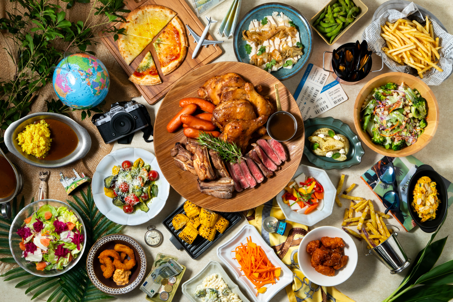 屋上という開放的な空間で、お料理約30種食べ放題。ドリンク全120種飲み放題。ノンアルも充実で、飲めなくても楽しめる!都会の空の下で旅先を感じるひとときをお楽しみください。
