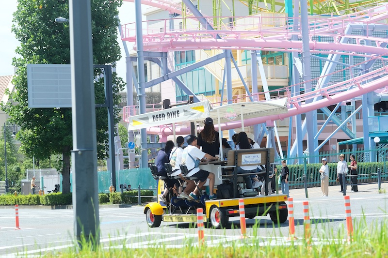 「ビアバイク」は、自転車大国オランダ発祥の“移動式ビアカウンター”。国内で初めて横浜で運用を開始した「ビアバイクツーリズム」では、6人の搭乗者がビールを片手にペダルを漕ぎ、横浜の街並みやブルワリーを巡ります。中央にはツアーをナビゲートするガイドが、後部座席には生演奏を奏でる演者が同乗。街の風景、音楽、そしてクラフトビールがひとつになった、横浜発の新感覚ツーリズムです。